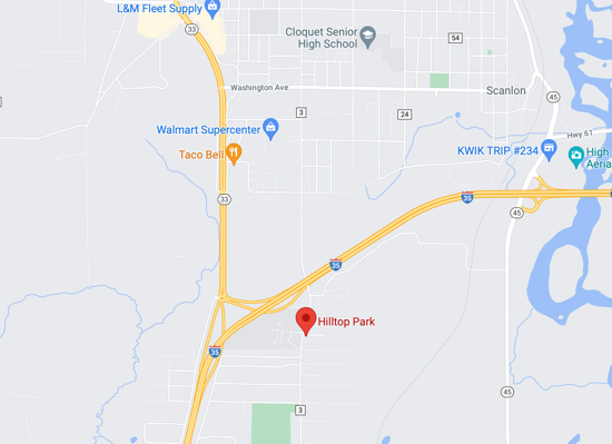 This is the field to the North of the parking lot in Cloquet. We never practice on the soccer fields, please stay off of those.